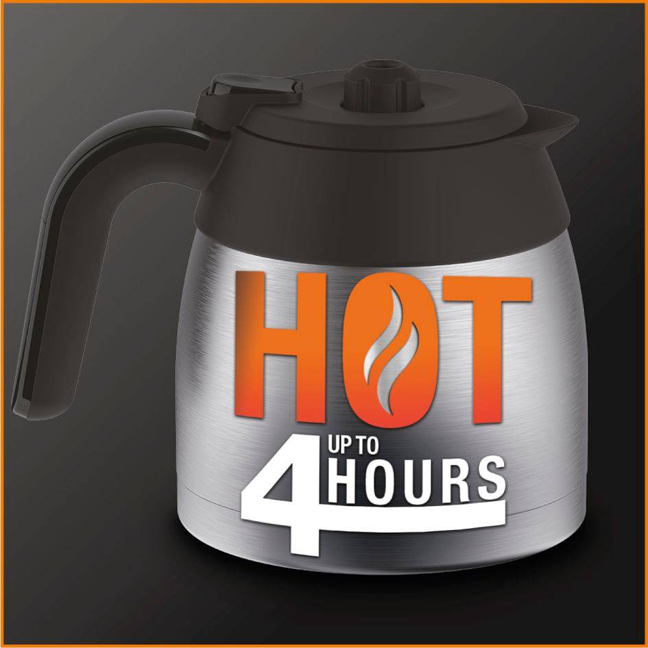 Een filterkoffiezetapparaat met een thermoskan van 1,25 l voor 10 tot 15 koppen heerlijke koffie die de hele ochtend warm blijft Perfecte temperatuurregeling voor perfecte resultaten vol smaak en aroma Waterniveau-aanduiding aan de voorkant voor gebruiksgemak en elke keer moeiteloos koffiezetten Een draaiend filterhouder voor eenvoudig vullen, perfect voor drukke ochtenden en om je keuken netjes te houden Schenk tijdens het koffiezetten een kop koffie in dankzij het handige anti-drupsysteem