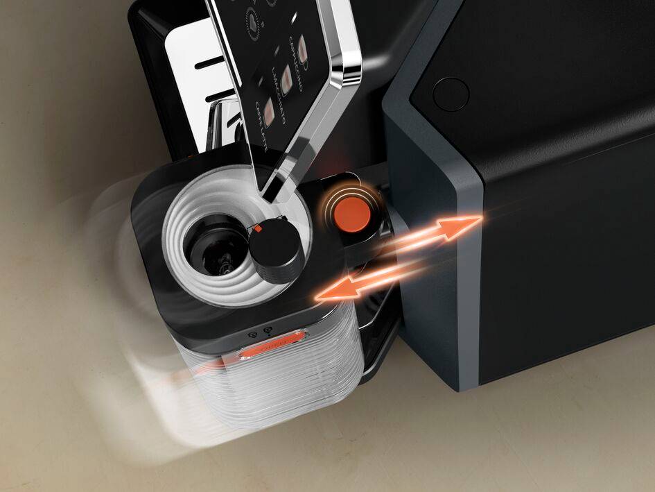 Het perfect geïntegreerde melkkannetje werd zorgvuldig ontworpen tot in het kleinste detail en heeft een veilige vergrendeling, voor onberispelijke precisie en een hogere betrouwbaarheid.